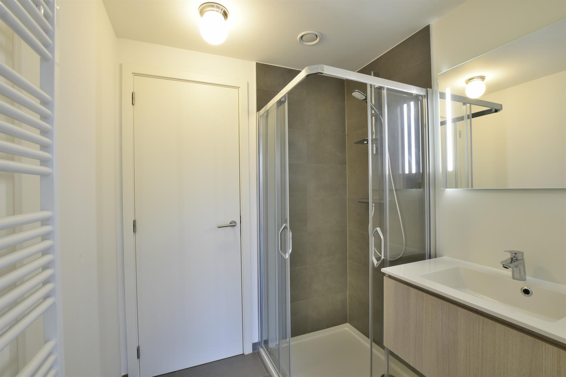 It is composed of: an entrance hall, separate toilet, a very bright living room, a fully fitted kitchen, 1 bedroom (9m²) with adjoining shower room, laundry room with washing machine connection, a cellar, a bicycle storage room, and a solarium.