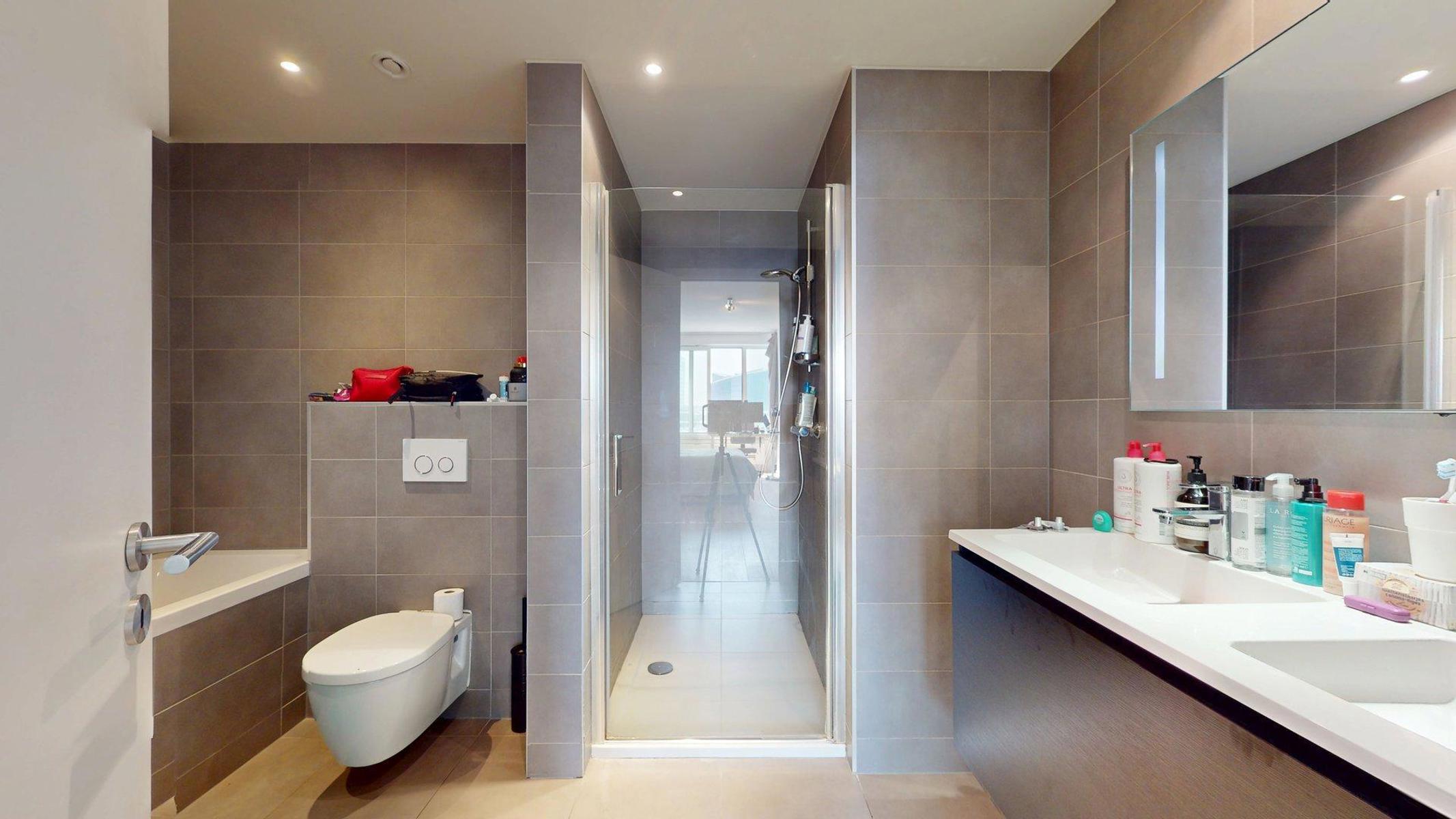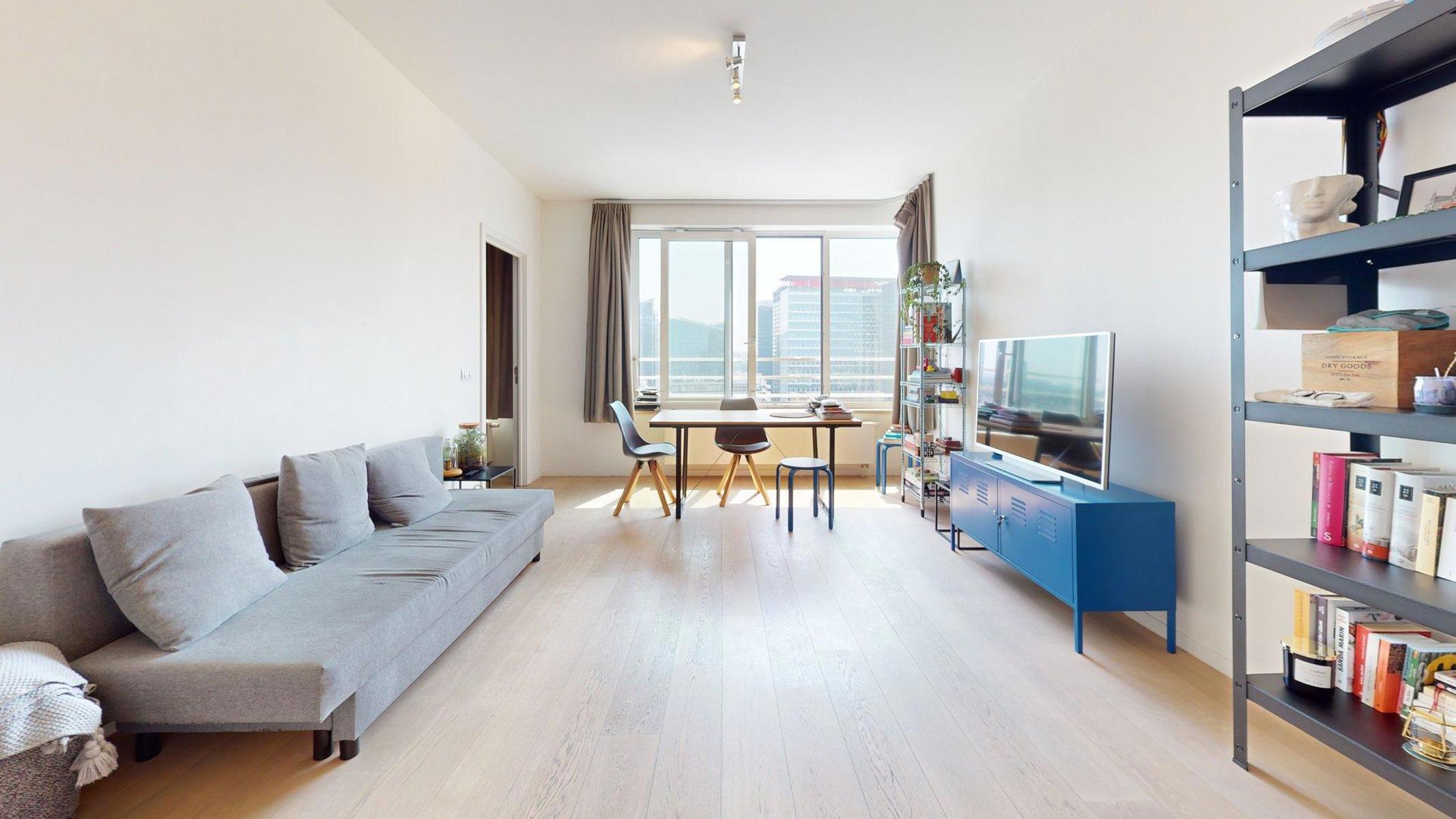 Bruxelles Quartier canal - Appartement situé au 15ième étage de la tour UPSITE- a proximité de Tour & Taxi, des transports en commun (métro Yser, gare du nord) et des commerces, Ce spacieux appartement de 1 chambre +/- 80 m² se compose comme suit : un hall d'entrée avec vestiaire, 1 buanderie ,1 toilette séparée, un séjour (29m²) avec une cuisine ouverte équipée marque Siemens (28m²), magnifique vue sur Bruxelles, façade orienté sud, une chambre avec accès à une salle de bain ( baignoire + douche). Information & visite sandro@immostyles.be PEB B.(quote des communs, provision eau chaude, chauffage, fond de réserve).