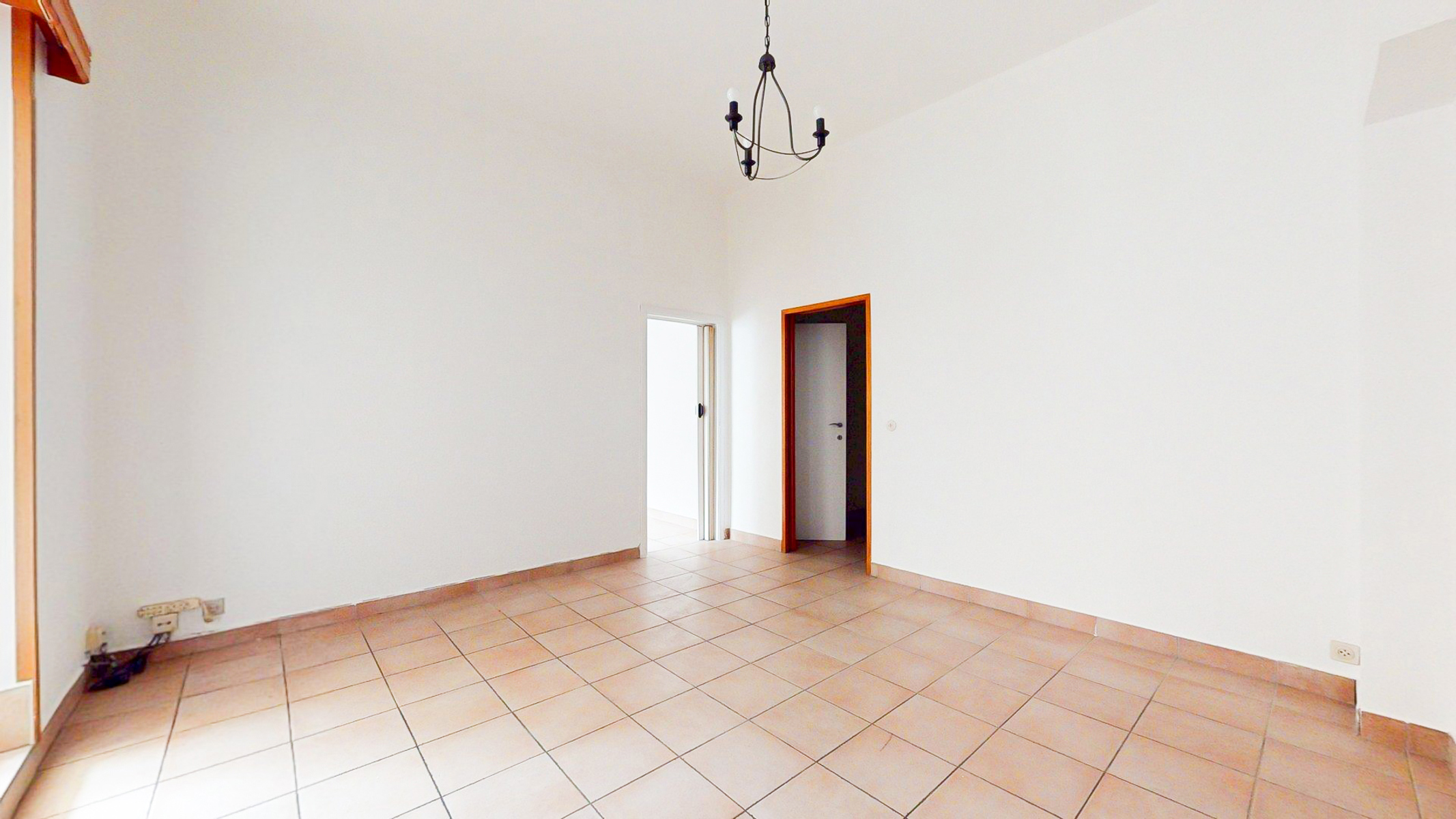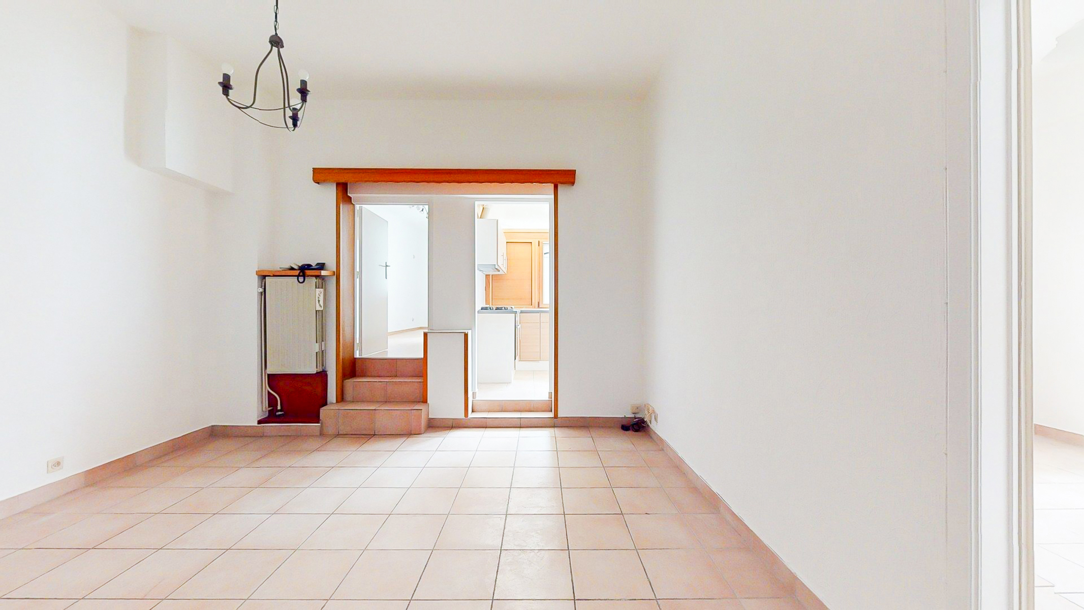 Het bestaat uit een inkomhal, een apart toilet, een woonkamer, 2 slaapkamers (13 m² & 9 m²), een badkamer (met bad), en een volledig uitgeruste keuken met toegang tot een terras van ca. 20 m². Het appartement is opnieuw geschilderd.